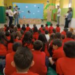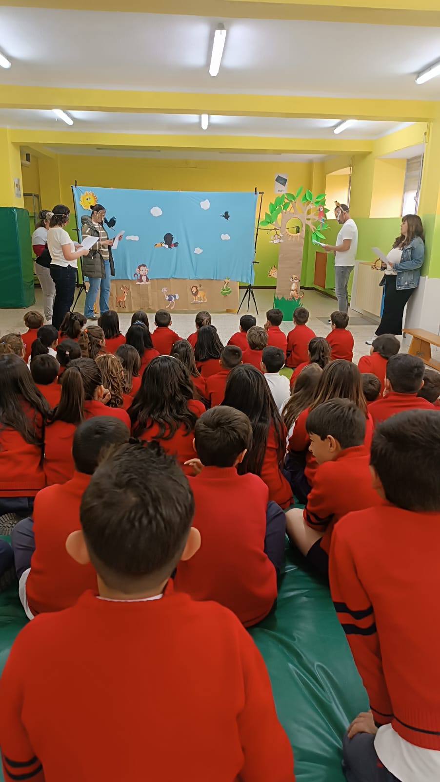 La jornada comenzó con un Cuentacuentos organizado por la AMPA del que pudieron disfrutar los peques de la guardería Chispitinas y los alumnos de Infantil. En un segundo turno asistieron 1º, 2º y 3º de Primaria, que disfrutaron de la historia secreta de cómo las jirafas llegaron a tener el cuello largo… Además la AMPA nos regaló unos marcapáginas chulísimos, gracias AMPA.