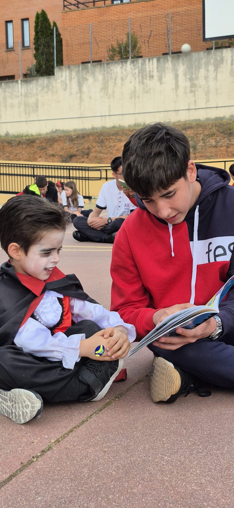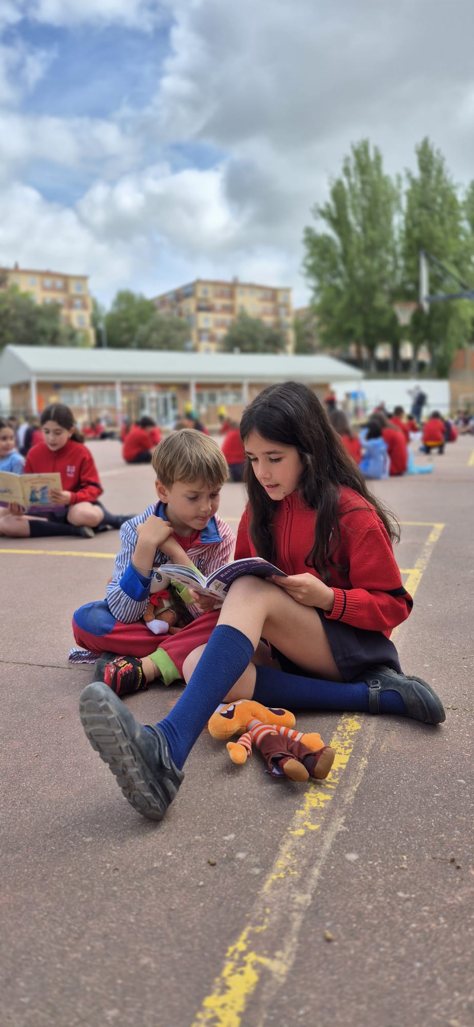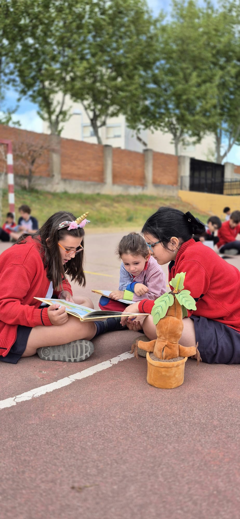Posteriormente, tuvo lugar nuestra actividad favorita “Creando lectores”, en la que los mayores acudieron a las aulas a recoger a los más pequeños para pasar un rato de lectura compartida. Nuestros alumnos se convirtieron en narradores y guías lectores, descubriendo cuentos e historias que reforzaron la convivencia, la calma y el aprendizaje entre las distintas edades. ¡También los pequeños leían a los mayores! Cuentos, concentración, disfraces, buena compañía y buen tiempo han sido el cóctel perfecto para disfrutar un año más de esta actividad tan esperada.