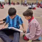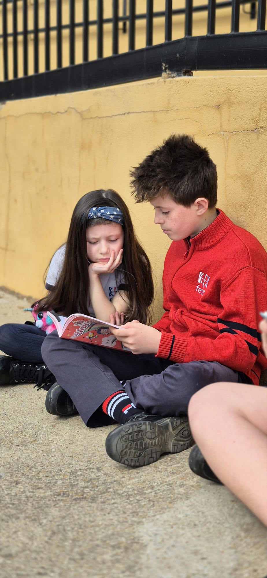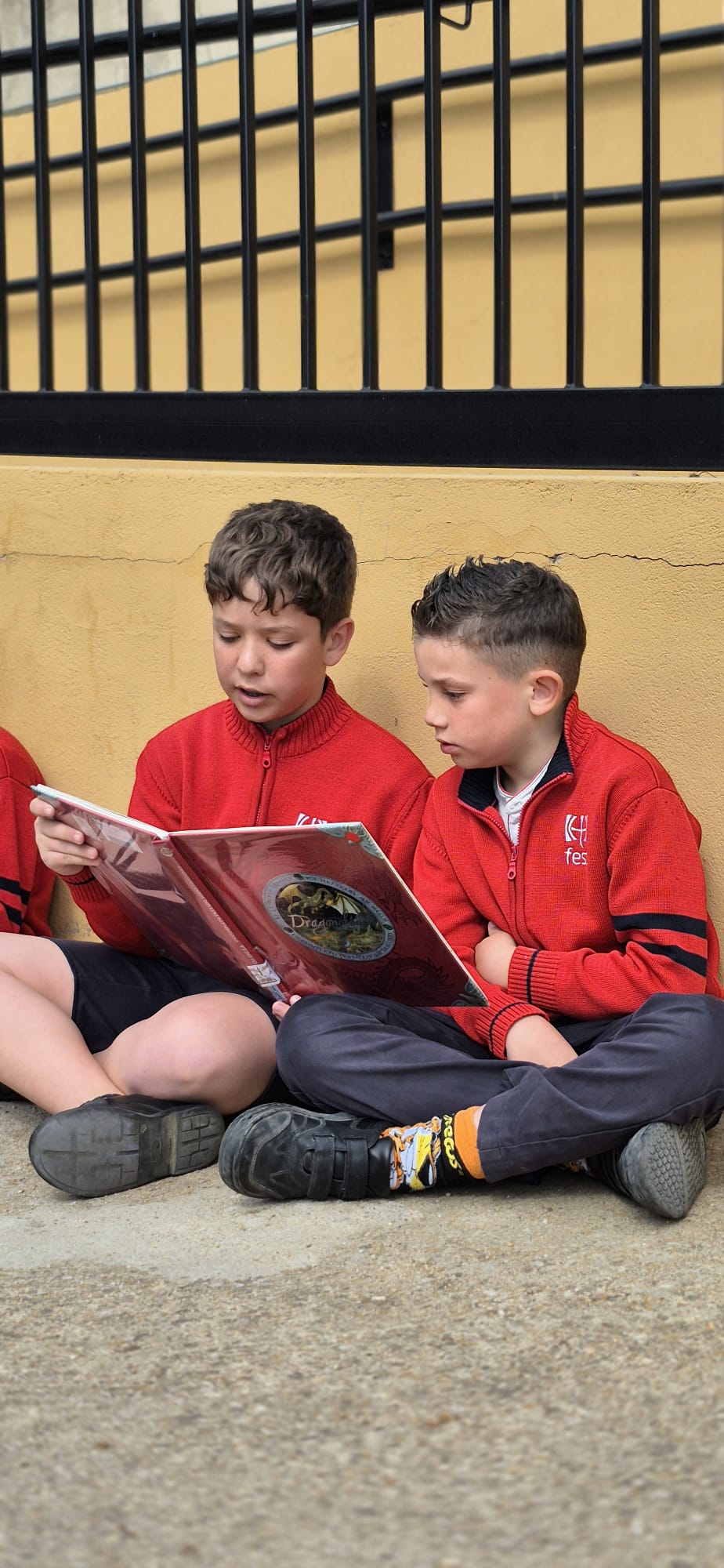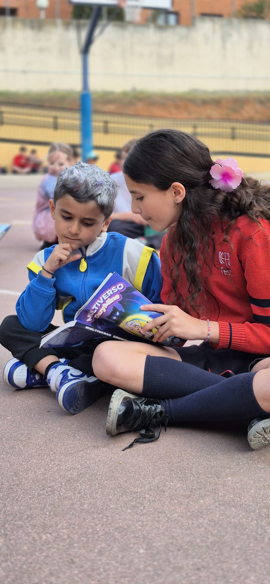 Posteriormente, tuvo lugar nuestra actividad favorita “Creando lectores”, en la que los mayores acudieron a las aulas a recoger a los más pequeños para pasar un rato de lectura compartida. Nuestros alumnos se convirtieron en narradores y guías lectores, descubriendo cuentos e historias que reforzaron la convivencia, la calma y el aprendizaje entre las distintas edades. ¡También los pequeños leían a los mayores! Cuentos, concentración, disfraces, buena compañía y buen tiempo han sido el cóctel perfecto para disfrutar un año más de esta actividad tan esperada.